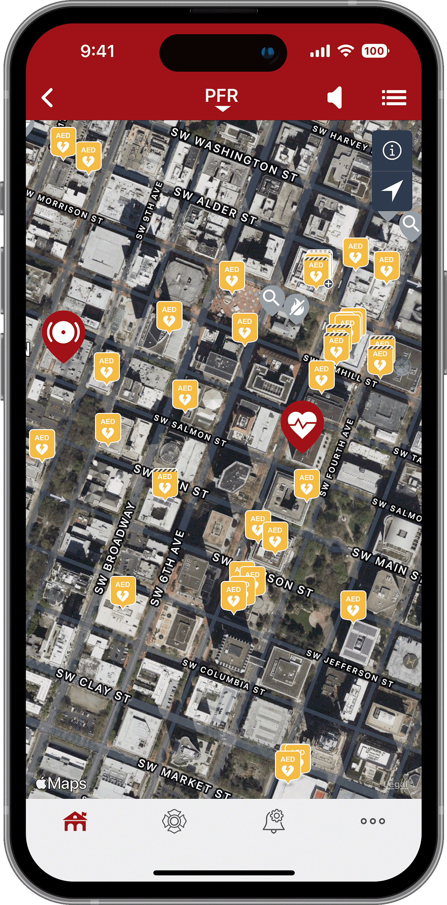 Professional Responders are active public safety employees, typically firefighters, paramedics, and law enforcement officers assigned Professional Responder status by their organization. Typically these employees respond and care for patients in residential settings while on duty. To encourage adoption, professional users are provided with specialized app capabilities for on-duty use. When off-duty, Professional Responders are alerted to all nearby cardiac arrest events in the jurisdiction.