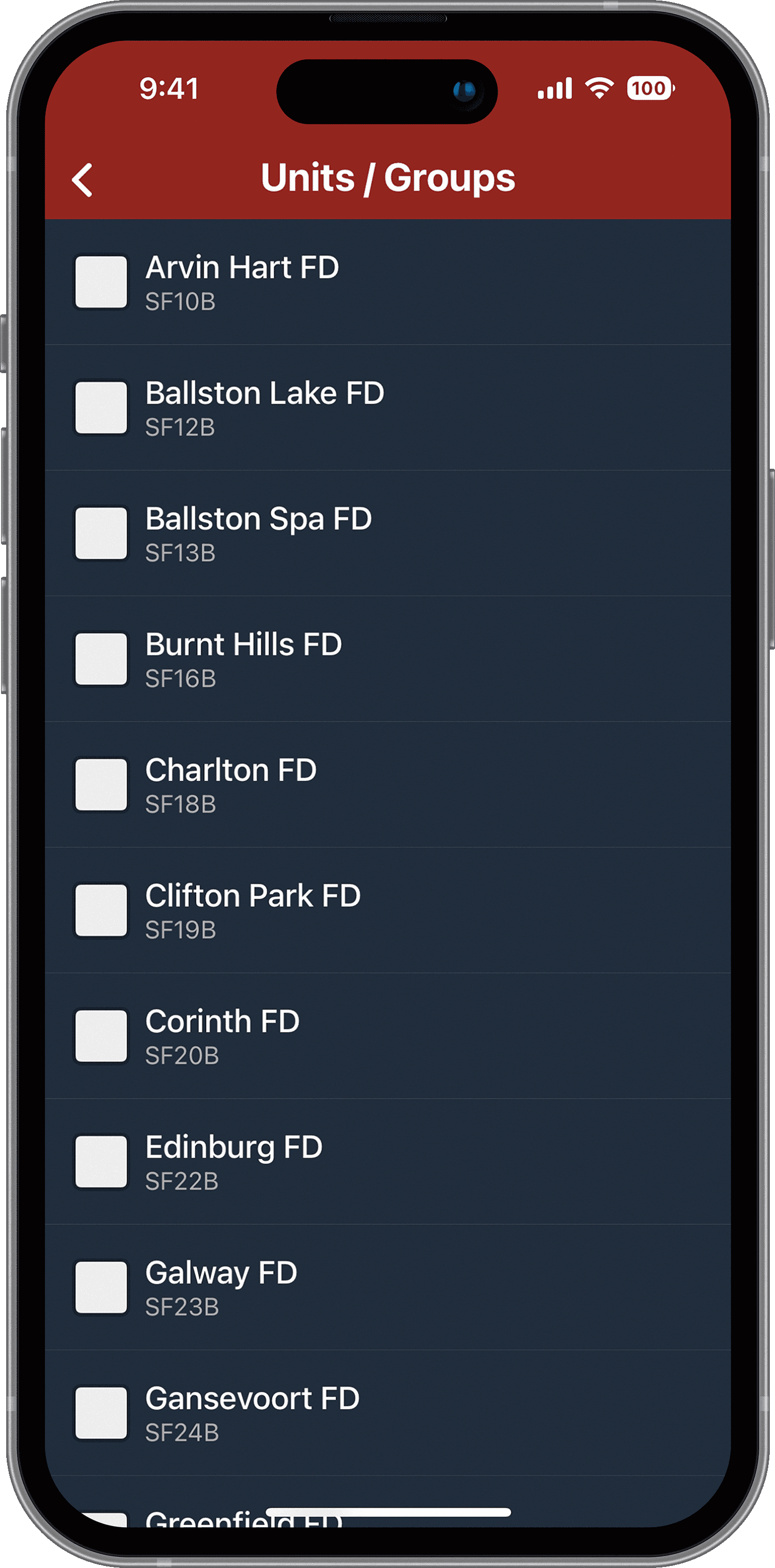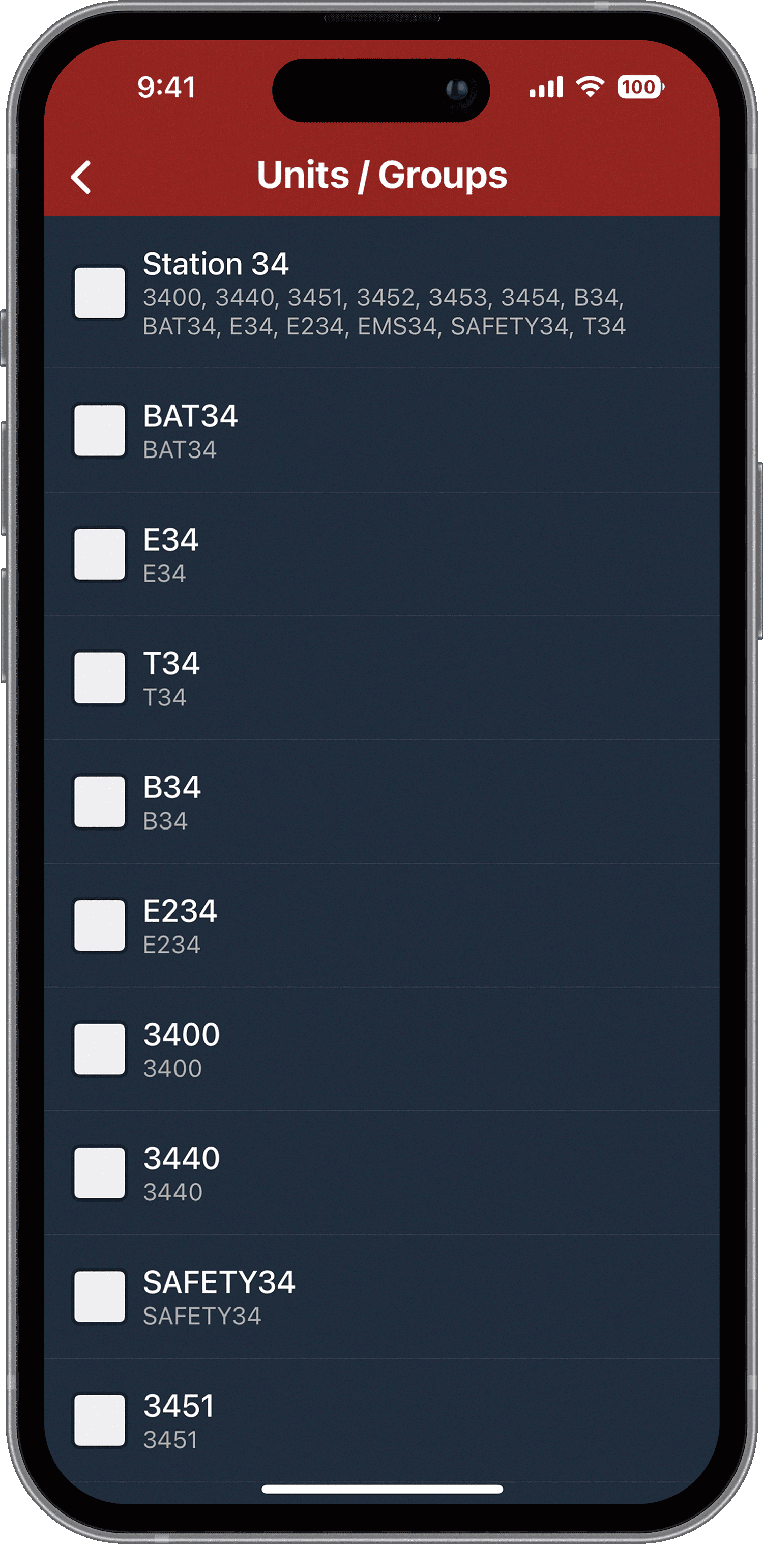 Unit/Group notifications allow Professional Responders to receive dispatch notifications for all incidents based on assignment, such as station or apparatus (e.g., notify me of all incidents for Engine 35).