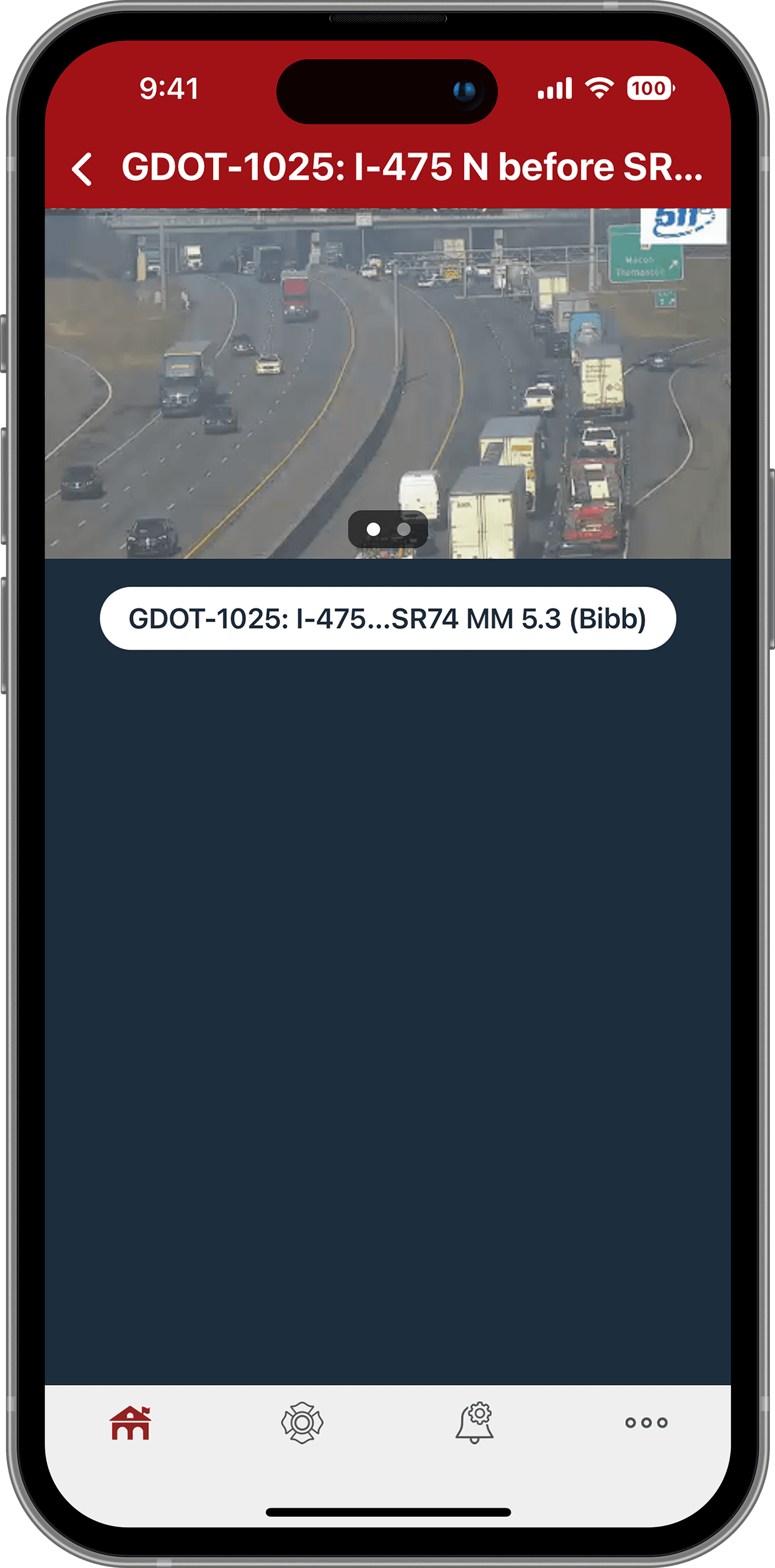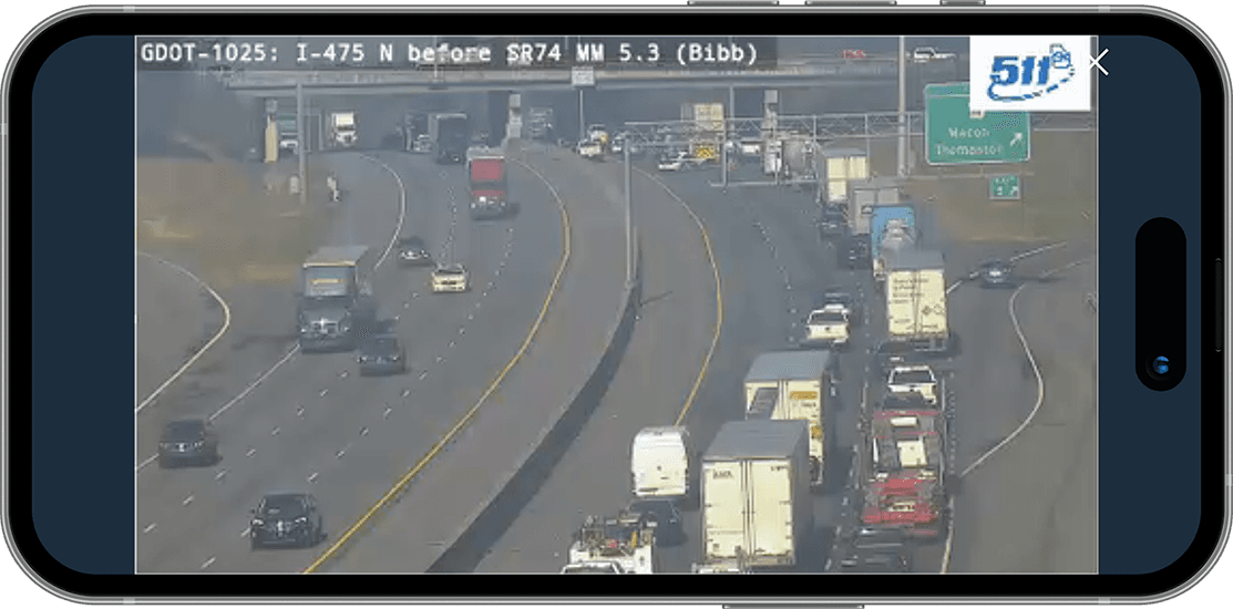 Green video camera icons indicate the location of traffic cameras. Tap the icon to display the available media (still image and/or live stream).